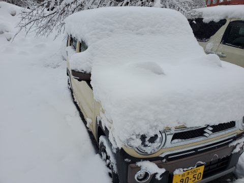 なんだか急に暖かくなってしまった感じ・・・。こちらでも先週は日中の気温は10度ぐらいまで上がってしまいました。そんな中、昨日はご覧の通りの積雪・・。約20cmの雪が降りました。 -